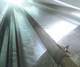 | 可調(diào)式的雙分絲展幅系統(tǒng),配合條幅平移紅外對(duì)中器,保證織物在低張力狀況下居中進(jìn)布,而不會(huì)產(chǎn)生拉升扭曲。 | 通過3-8分鐘堆置和大流量循環(huán)噴淋,使油脂和漿料充分乳化或膨化,并使織物在高溫和助劑的作用下,使織物均勻充分的收縮,以達(dá)到滿意的克重和縮率。 | |
